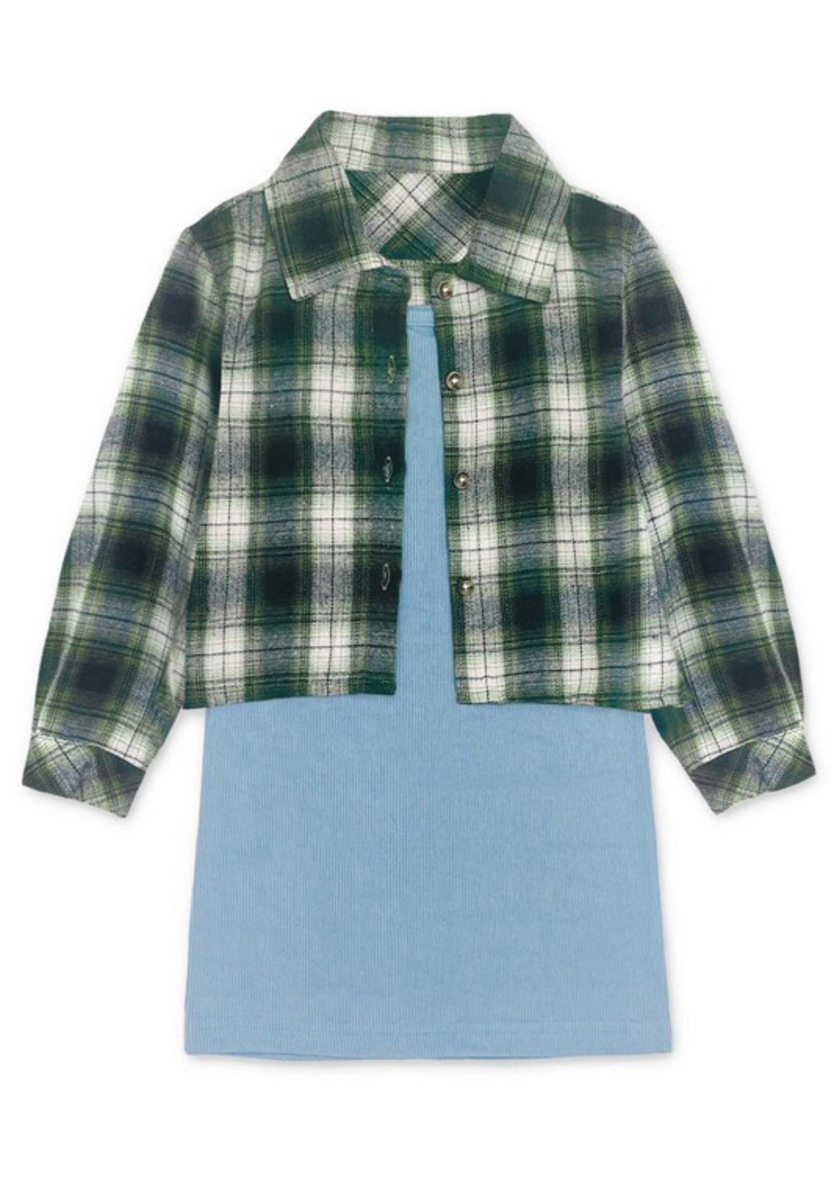 Button up flannel set w/ribbed tank dress.