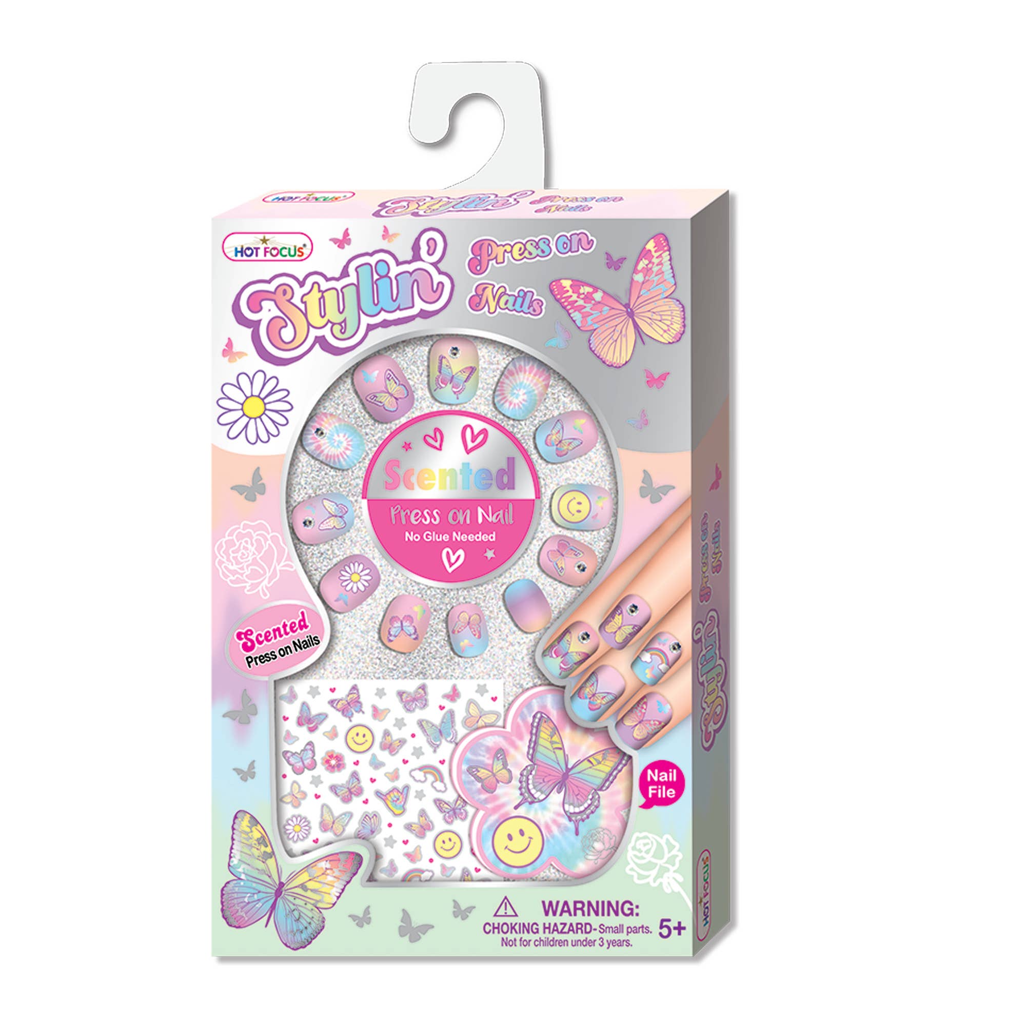 Create a stylish, unique look with these easy to apply press on nails and fun nail stickers Contains: 12 Press on Nails 1 Nail File 1 Sheet of Nail Stickers
